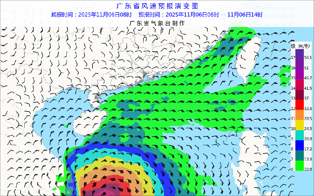 海上大风预报:6-7日,受弱冷空气影响,我省海面有北到东北风6级、阵风7级;南海西南部海面风力受台风“海鸥”直接影响,平均风10~12级、阵风13~14级,其中台风中心经过的附近海区有旋转风13~16级、阵风15~17级;南海北部海面以6~8级风为主;9日夜间-10日,受冷空气和台风“凤凰”外围共同影响,粤东海面7~8级、阵风9~10级,台湾海峡、南海东北部8~10级、阵风11~12级。