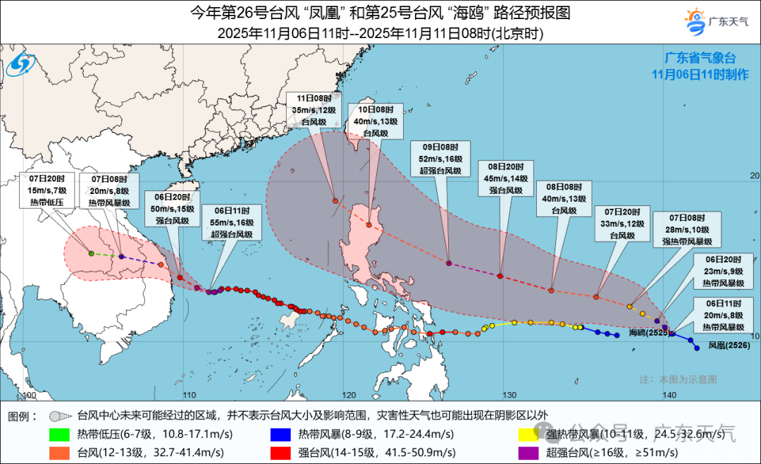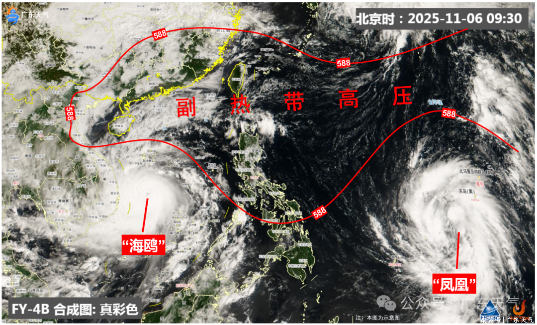 今天(11月6日)上午,从卫星云图可见配查信,海上有两个台风活动,分别为今年第25号台风“海鸥”和第26号台风“凤凰”。